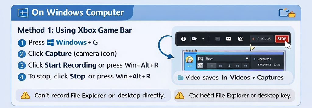 β οΈ Note: Doesnβt record File Explorer or desktop directly.